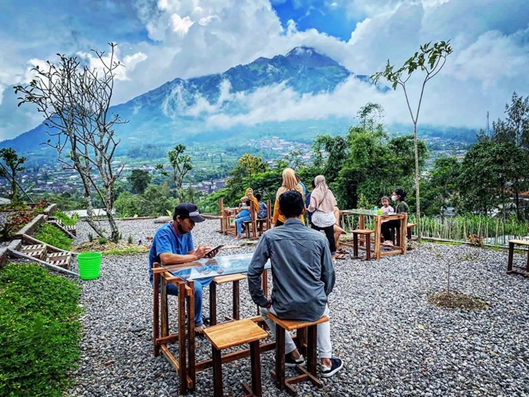 Kamu akan bingung memilih nongkrong di cafe yang mana, karena semua memiliki keistimewaaan. Cafe dan panorama alam sekitarnya yang sama-sama cantik.